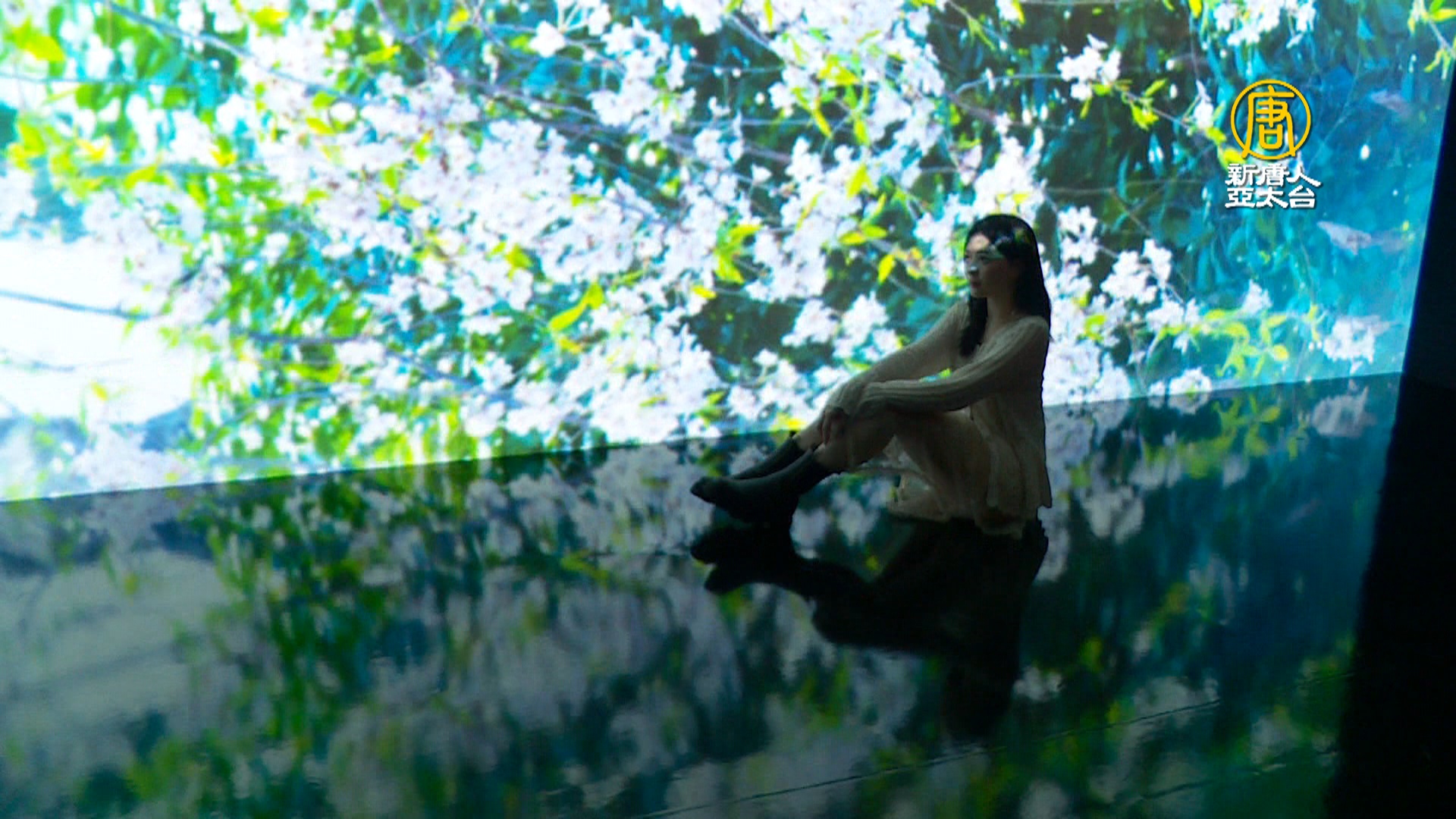 新唐人記者 甯郁翔:「這個沉浸藝術展有5米高的花牆,千朵花在這邊。隨著記者的腳步,走過這個隧道,可以看到這邊有1個數位藝術牆,裡面總共有500張蜷川實花的藝術作品,並且總共有2500種的沉浸式體驗。」