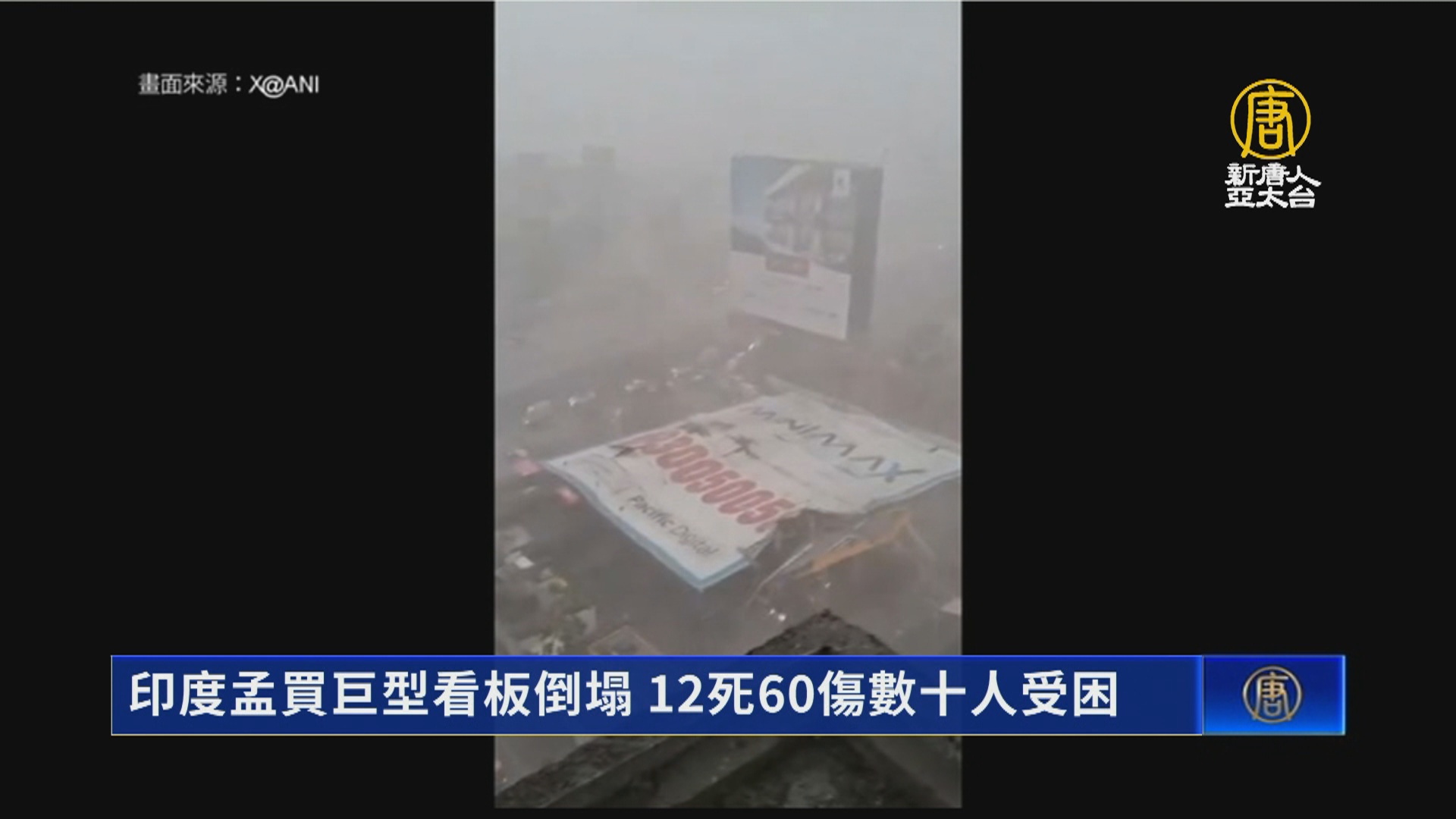 【新唐人亞太台 2024 年 05 月 14 日訊】印度金融重鎮孟買市一塊巨型廣告招牌,13日在猛烈風暴侵襲期間倒塌,已知造成12人死亡、至少60人受傷,恐怕還有20至30人受困,當局緊急出動起重機、切割機等展開救援。印度政府指示審查所有此類廣告看板,以及對該事件進行調查。孟買近日遭遇強風、暴雨和沙塵暴襲擊,部分地區短暫停電,陸空交通都受到影響,除了火車系統大亂外,孟買市機場航班還一度停飛,至少15架航班被迫改道。