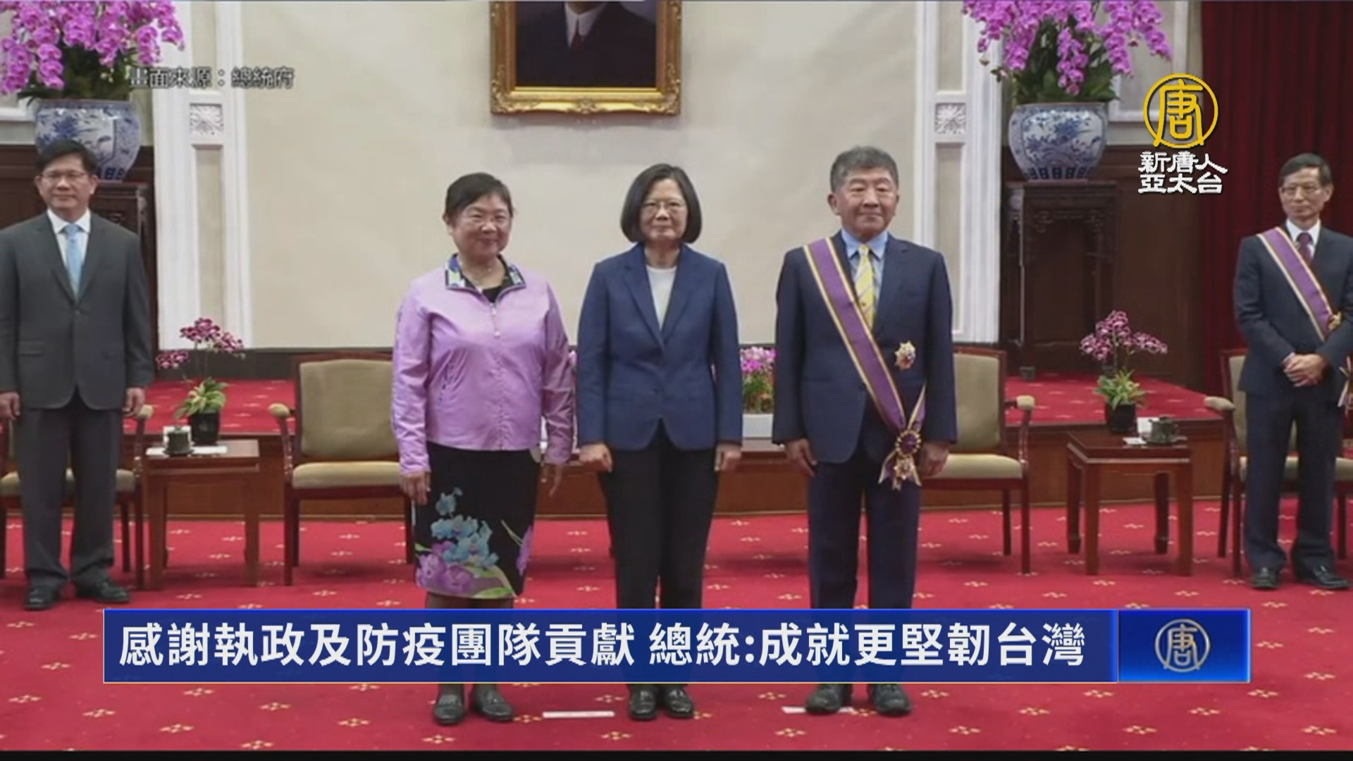【新唐人亞太台 2024 年 05 月 14 日訊】總統蔡英文即將卸任,連日來授勳政務官,今天頒授執政及防疫團隊勳章,包括行政院政委林萬億、衛福部部長薛瑞元、前部長陳時中等16人,感謝執政團隊及防疫團隊,為國家社會的貢獻與付出。蔡總統表示,過去8年儘管面臨許多挑戰,但因為有他們的共同打拚,台灣才能自信、勇敢地大步前進,走向世界。尤其是歷經了一場百年大疫,台灣能夠在疫情挑戰中站穩腳步,防疫團隊功不可沒。並表示,改革總是艱辛和充滿挑戰,在這條路上,正是因為有行政團隊堅持理想,才能成就一個更加堅韌的台灣。