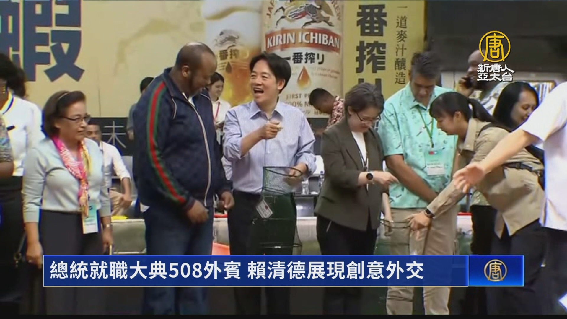 【新唐人亞太台 2024 年 05 月 20 日訊】好,520總統就職典禮在過幾個小時就要登場了,9點20分新卸任總統將會一起向群眾致意,巨幅國旗,也會在國歌大合唱時,飛越總統府前上空,這次有508位外賓親自抵台祝賀,準總統賴清德、準副總統蕭美琴,昨天先邀友邦元首體驗釣蝦,展現創意外交。