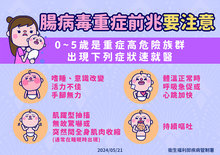 值得注意的是,成年人感染腸病毒後,症狀並不明顯,很容易傳給家中幼兒,籲請民眾外出返家後務必先更衣,以肥皂正確洗手。幼童如經醫師診斷感染腸病毒時,應落實生病不上課,以避免與其他幼童頻繁接觸造成交叉感染。