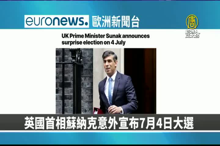 【新唐人亞太台 2024 年 05 月 23 日訊】來看到歐洲新聞台報導:英國首相蘇納克宣布,全國大選將於7月4日舉行。