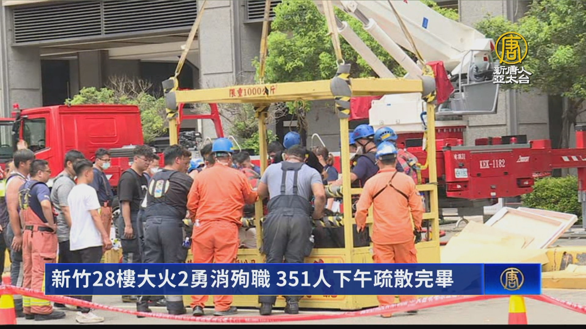 【新唐人亞太台 2024 年 05 月 27 日訊】新竹市慈雲路上的一棟社區大樓,昨天深夜發生火警,消防隊連夜搶救,但有兩名隊員不幸殉職。由於高樓火警救援不容易,大量濃煙會沿著管道間到高樓層,直到今天下午1點多,現場總人數351人才全數疏散完畢。新竹市消防局表示,消防局將於晚間8點前公布事故調查初判結果。