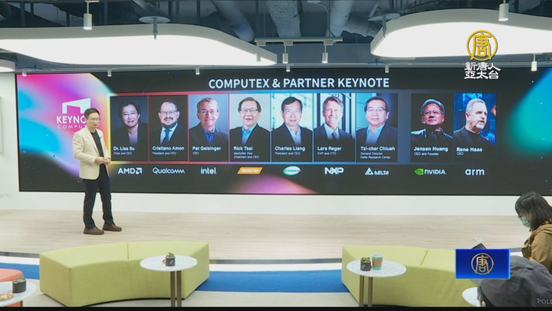 【新唐人亞太台 2024 年 05 月 28 日訊】今年台北國際電腦展,6月4日登場,全球9位重量級CEO,包括輝達、超微以及英特爾,齊聚台灣。主辦單位外貿協會,今天(28日)舉行展前記者會,董事長黃志芳指出,台灣吸引國際巨頭的重要關鍵。