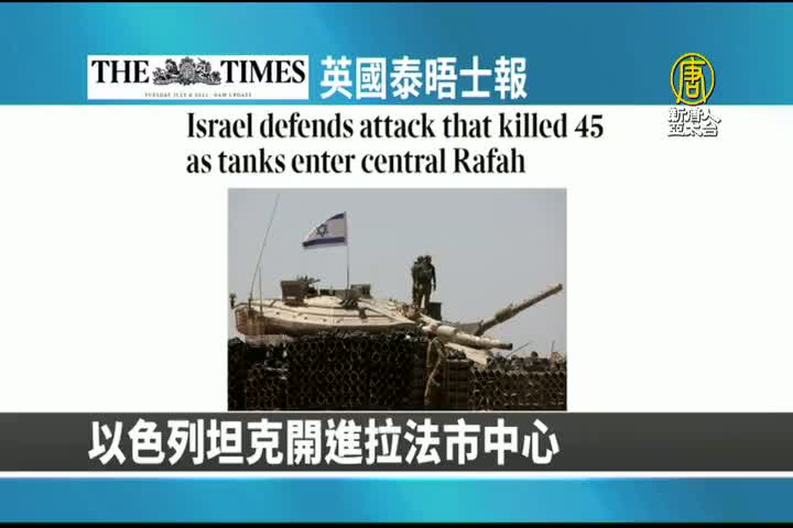 【新唐人亞太台 2024 年 05 月 29 日訊】接著是英國泰晤士報的報導:以色列坦克開進拉法市中心。
