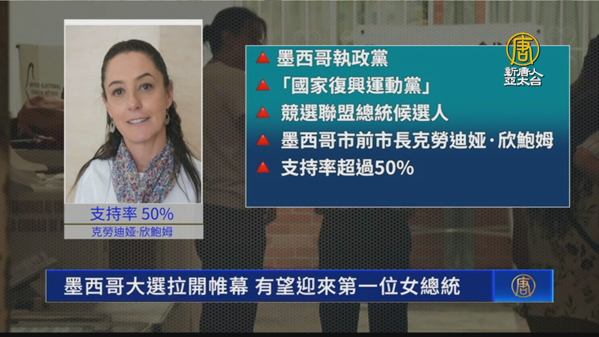 【新唐人亞太台 2024 年 06 月 03 日訊】週日墨西哥總統大選投票登場。因民調支持率最高的兩位候選人都是女性,墨西哥將有望迎來史上首位女總統。
