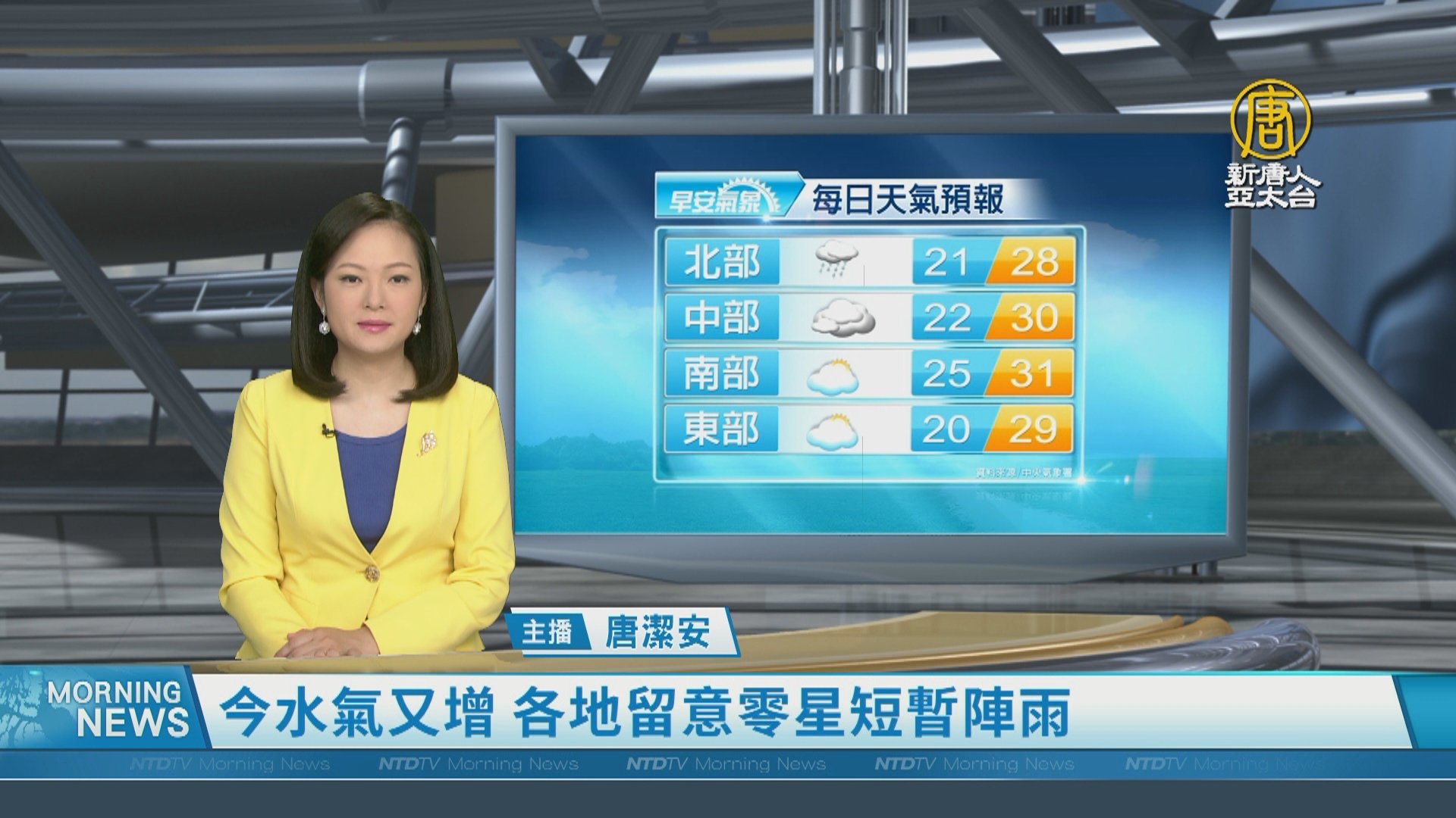 【新唐人亞太台 2024 年 06 月 04 日訊】歡迎您收看6月4日的早安新唐人,我是唐潔安,先來帶您關心天氣。今天水氣逐漸增加,各地都有局部短暫陣雨,山區午後也要留意強降雨,提醒觀眾朋友出門帶傘。而週末就要迎接端午連假了,南部、東南部地區,將有局部短暫陣雨或雷雨,其他地區也要留意午後大雨。帶您一起來看到國際媒體重要訊息。