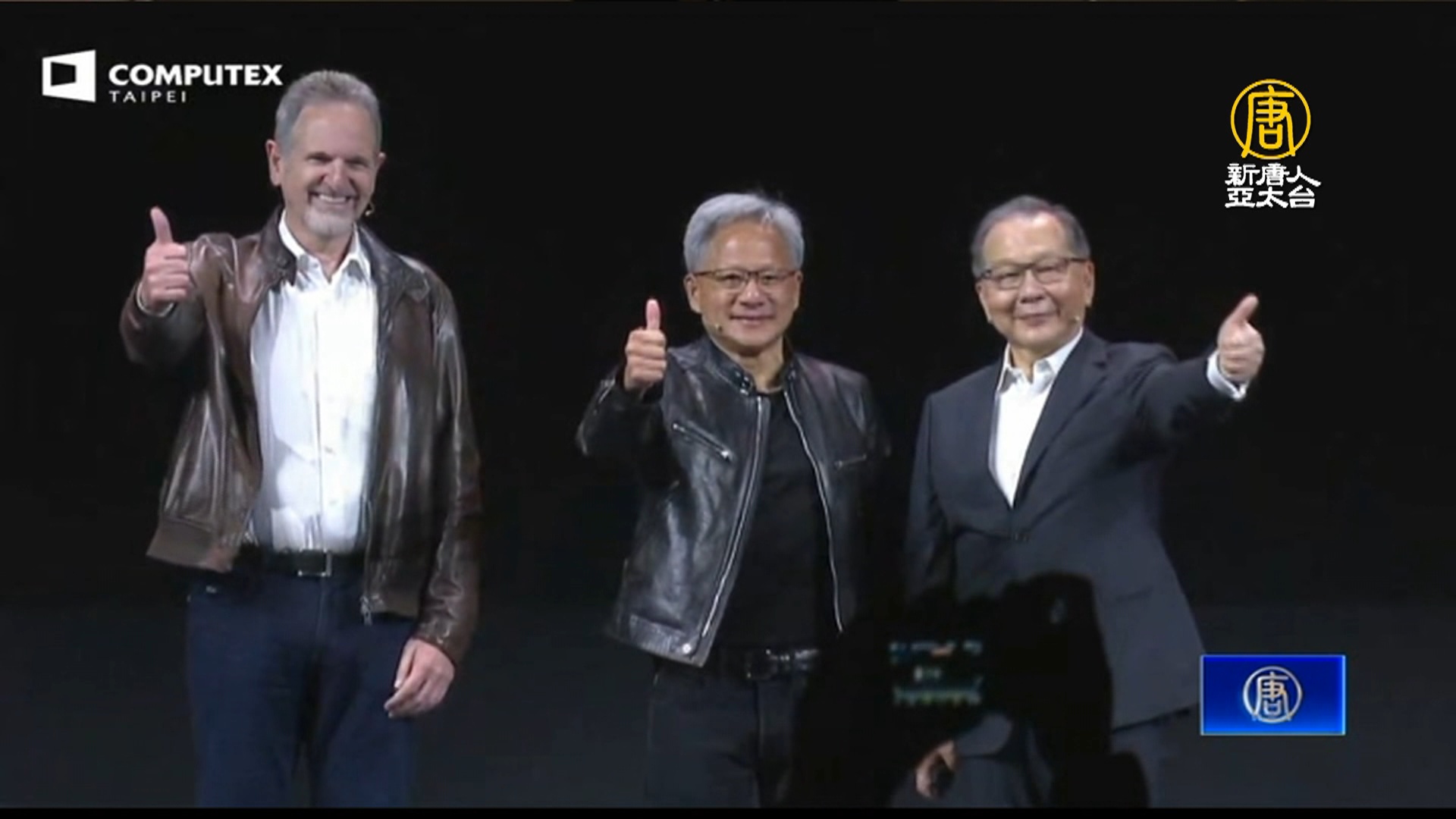 【新唐人亞太台 2024 年 06 月 04 日訊】台灣IC設計龍頭廠聯發科,去年宣布與輝達在車用領域合作,執行長蔡力行,今(6/4)天COMPUTEX登台演講,一展手機AI晶片應用功能,也大玩皮衣梗,邀請輝達執行長黃仁勳站台,現場笑聲不斷。