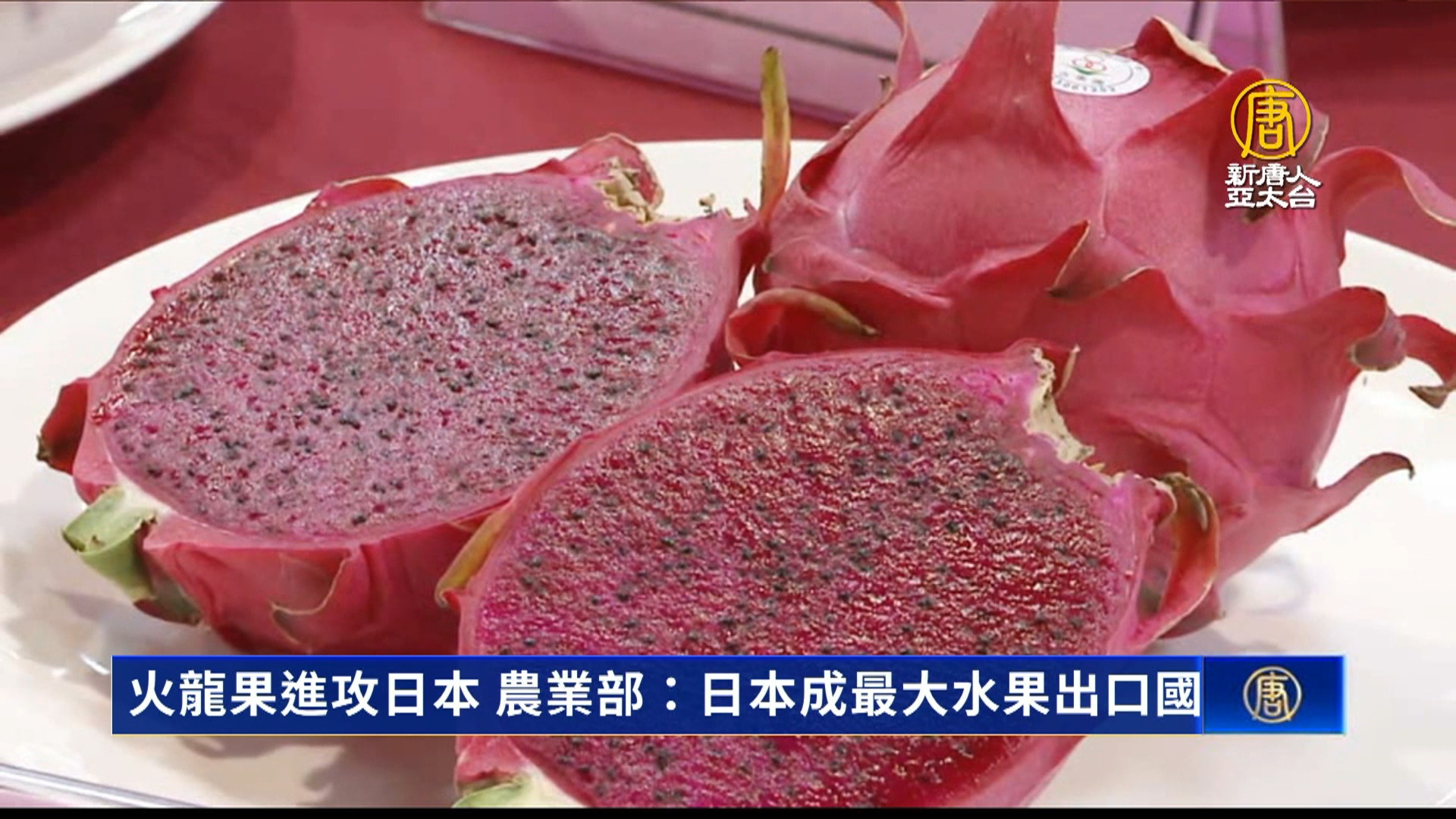 【新唐人亞太台 2024 年 06 月 05 日訊】水果外銷大突破!歷經8年爭取與台日雙方多次協商,日本農林水產省今天(5日)正式公告,開放我國的三角柱屬火龍果進入日本市場,包含紅肉、紫紅肉及雜交種皆可進口。農業部指出,台灣生鮮水果去年外銷數量約3萬4000多公噸、外銷值近6300萬美元(約新台幣19億),其中出口日本近1萬8000公噸、出口值近3000萬美元(新台幣9億),比2016年出口量成長超過4倍,成為台灣水果最大外銷市場。