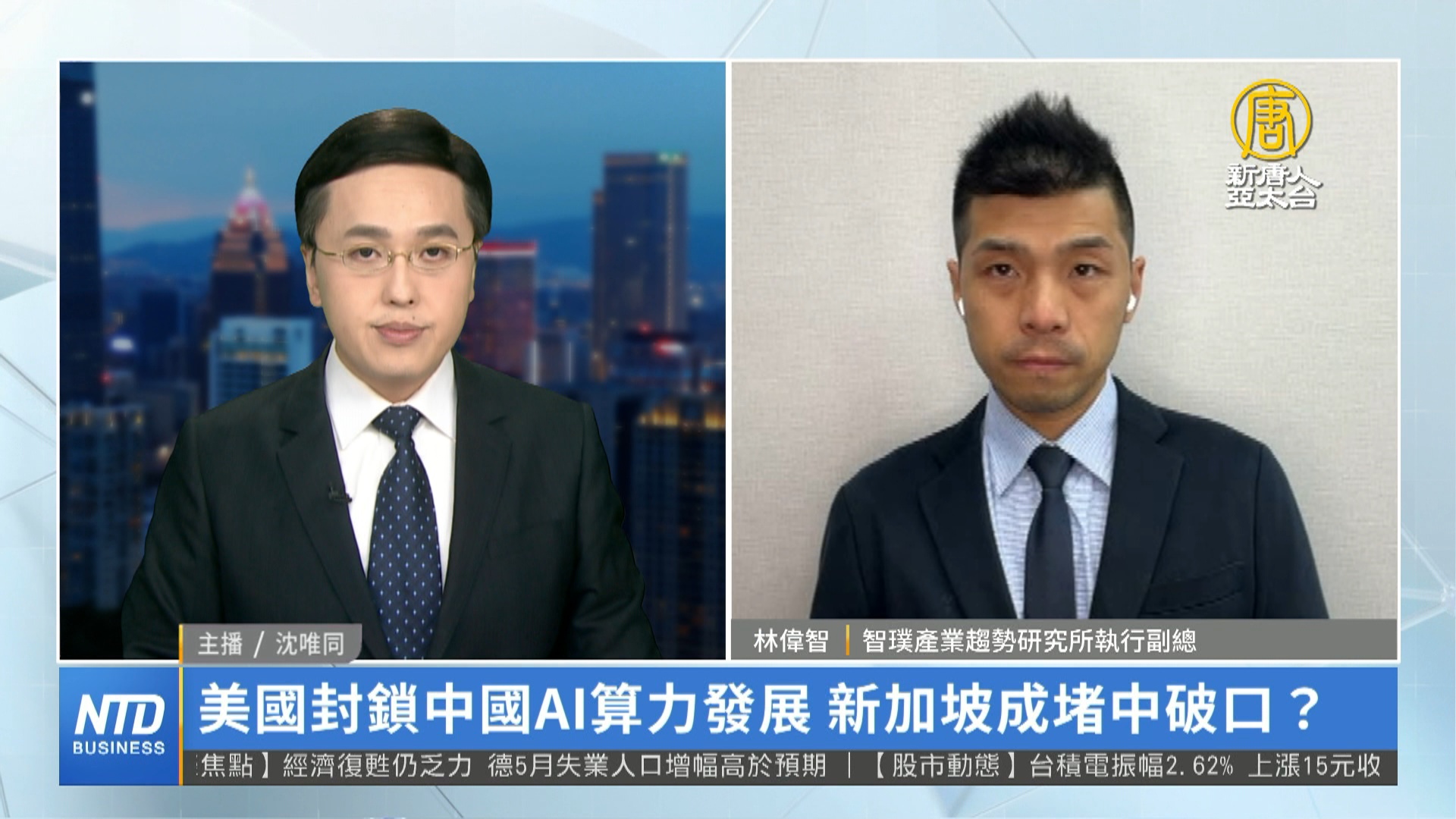 【新唐人亞太台 2024 年 06 月 05 日訊】在AI趨勢下,在這個當口,美國擺好陣勢,美台建立強大的晶片供應鏈,同時防堵AI晶片輸往中國。我們請教智璞產業趨勢研究所執行副總林偉智,美國這樣的政策,是否真的能壓制中國AI趨勢的發展?另外外媒關注,由於輝達在新加坡營收比重相當高達到15%,被直指主要服務對象就是中國企業,擔心成為對中防堵晶片破口?您怎麼觀察?