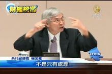 立委 賴士葆 Vs.中華民國中央銀行總裁 楊金龍:「要判斷它(股市)過熱不過熱,有些時候是很難的,(大家會擔心過熱以後就泡沫),它會correction(修正)、它會修正,對投資人來講,都是居高思危。」