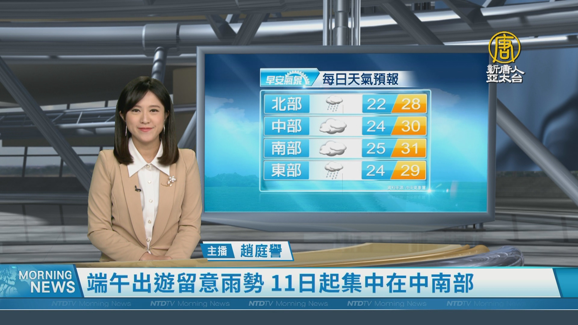 【新唐人亞太台 2024 年 06 月 07 日訊】歡迎您收看6月7日的早安新唐人,我是趙庭譽,先來帶您關心天氣。氣象署提醒,未來一週的雨勢預估有局部大雨發生,下雨的天數可能會比較長,尤其中南部山區要留意坍方落石或積水淹水的狀況。提醒觀眾朋友,端午假期出遊,慎防大雨,做好雨備方案。帶您一起來看到國際媒體重要訊息。