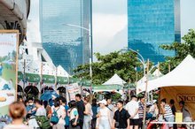 法式市集首日就湧現人潮。來自全台各地、超過60家法式主題品牌吸引了民眾駐足,特別是知名網紅的攤位更早早排起長龍。開幕式由來自法國的闈鴻擔任主持人,與其他KOL共同支持活動,增添了現場的熱鬧氛圍。