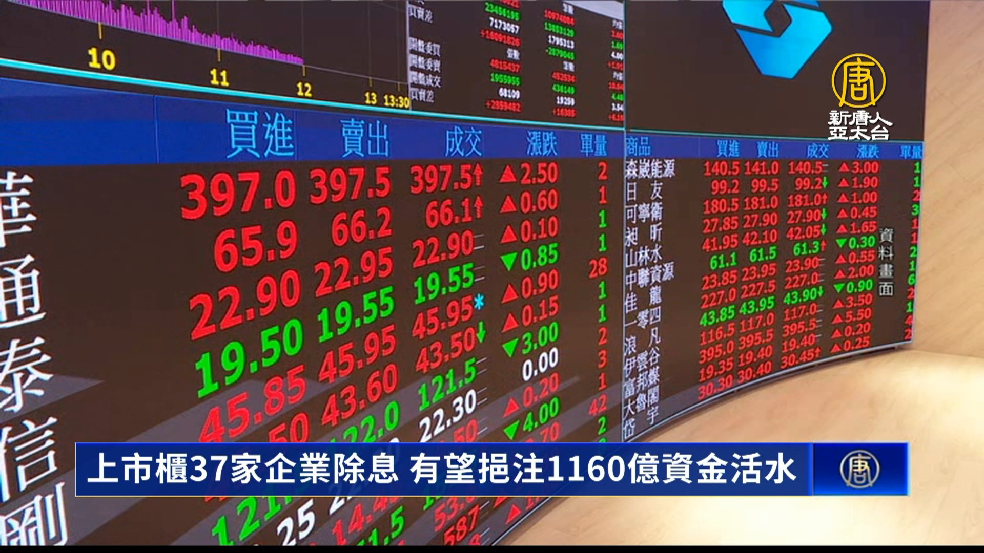 上市櫃37家企業除息 有望挹注1160億資金活水
