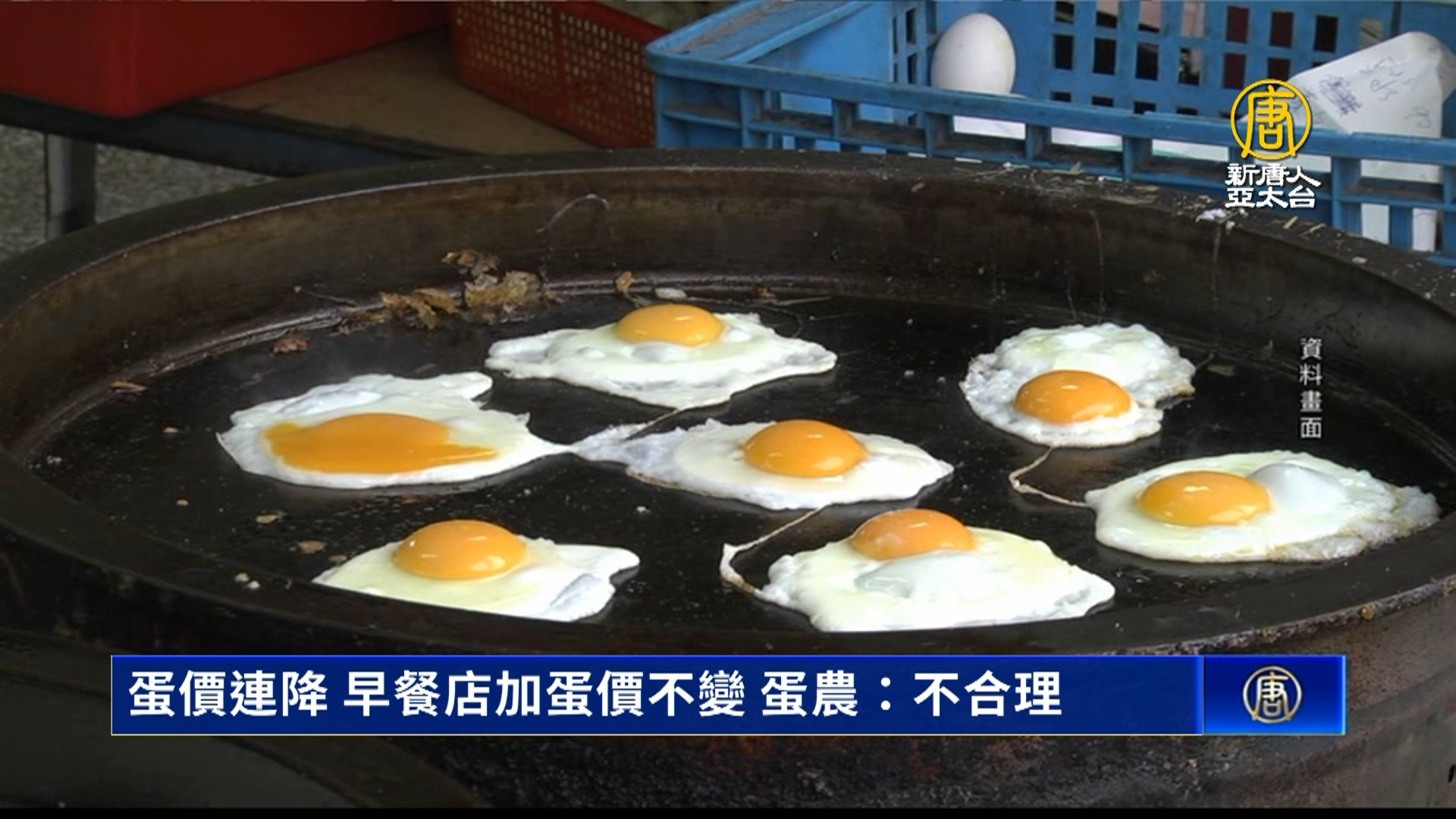 【新唐人亞太台 2024 年 06 月 10 日訊】近2個月來,國內蛋價4度調降,產地價從年初的每台斤42元,調降到現在的30.5元,累計降幅達到12元,創下2年來最低價。超市蛋價也降到一顆5元。不過有網友指出,現在餐廳、早餐店加蛋,還是要花15或20元。不只民眾認為不合理,中華民國養雞協會蛋雞組組長黃榮珍也表示,現在因為產量過剩,蛋農是賠本在賣,消費端也應該降價。另外,蛋農也在研擬因應對策,黃榮珍表示,預計近期全台一個月會淘汰180萬隻老母雞,來調整產量,農業部也在協調提供冷藏設施,讓蛋農存放過剩雞蛋。