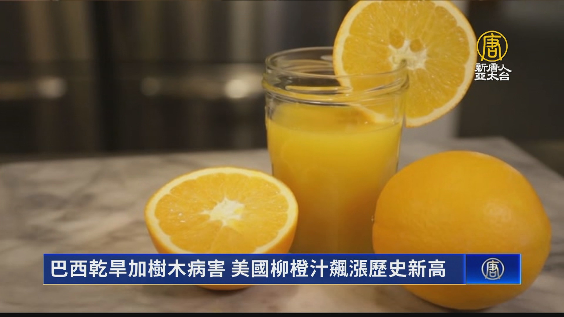 【新唐人亞太台 2024 年 06 月 12 日訊】全球最大柳橙產地美國佛羅里達州和巴西,受到乾旱和樹木病害影響,柳橙產量銳減,導致柳橙汁價格上揚,美國柳橙汁今年漲幅已超過30%。