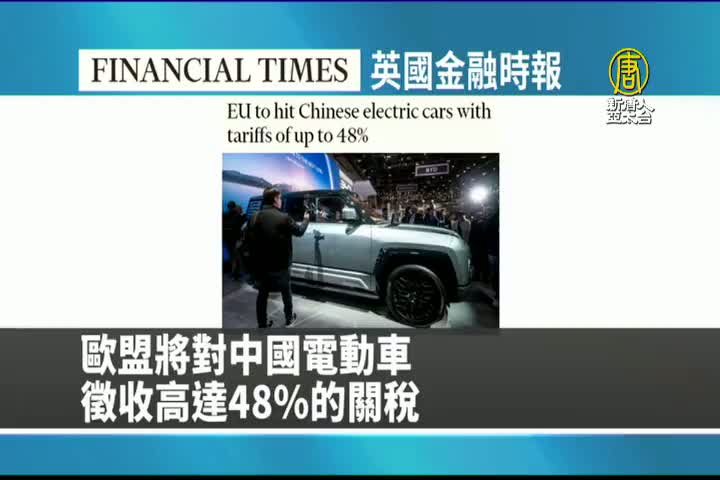 【新唐人亞太台 2024 年 06 月 13 日訊】接著是英國金融時報的報導:歐盟將對中國電動車徵收高達48%的關稅。