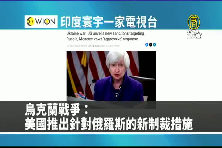 【新唐人亞太台 2024 年 06 月 13 日訊】最後是印度寰宇一家電視台報導:美國週三宣布對俄新一波制裁,限制莫斯科金融體系及獲取軍事生產所需產品與服務,包括中國等地數十家電子產品供應商。
