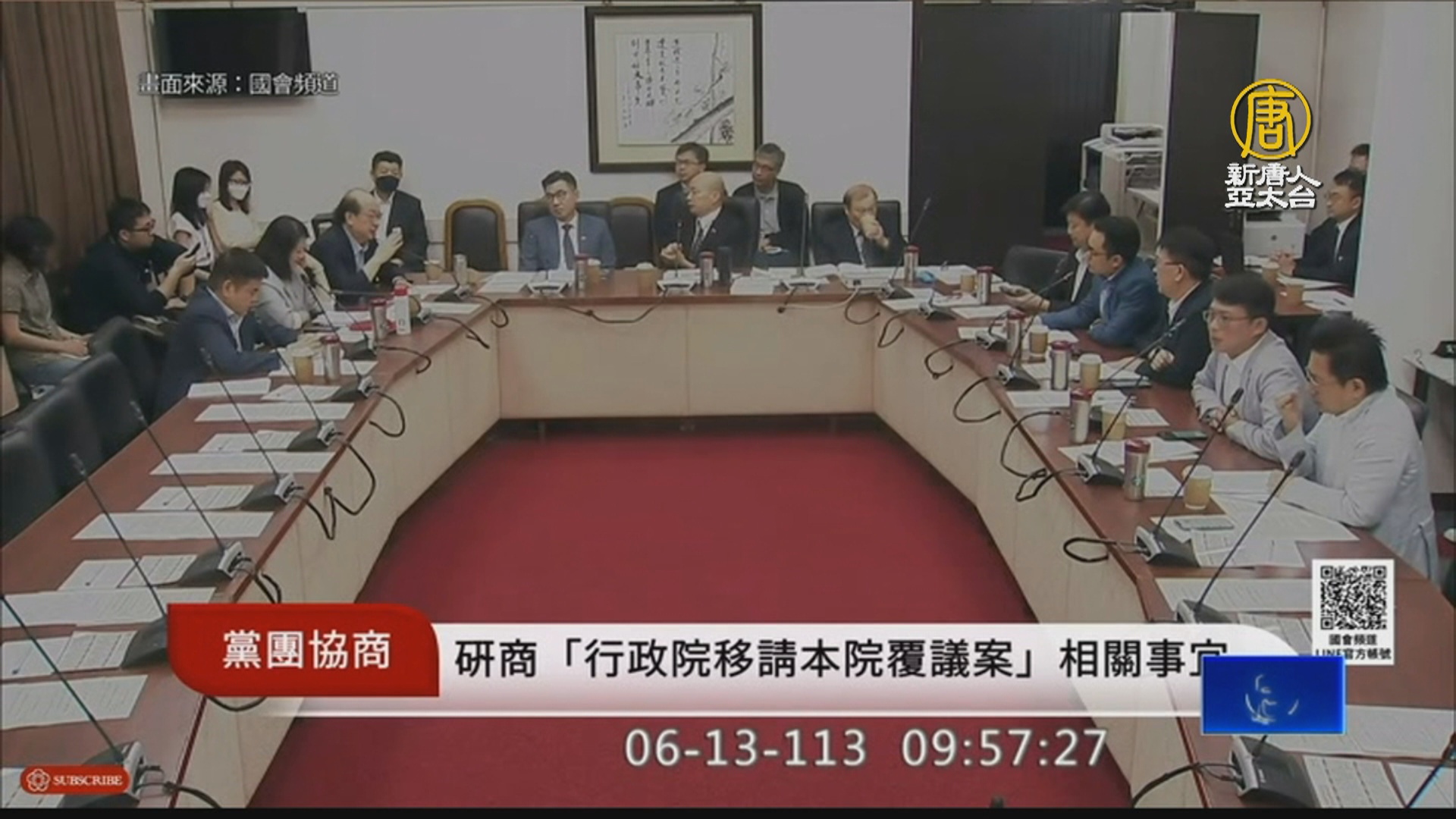 【新唐人亞太台 2024 年 06 月 13 日訊】總統府11日核可行政院針對國會改革法案的覆議案,立法院最遲須要在25日前處理覆議案。立法院長韓國瑜今天上午召集朝野協商,研商有關行政院,針對國會改革法案移請立法院覆議案的相關事宜。由於朝野對於發言次序有不同意見,發生爭執。隨後,韓國瑜裁示休息。