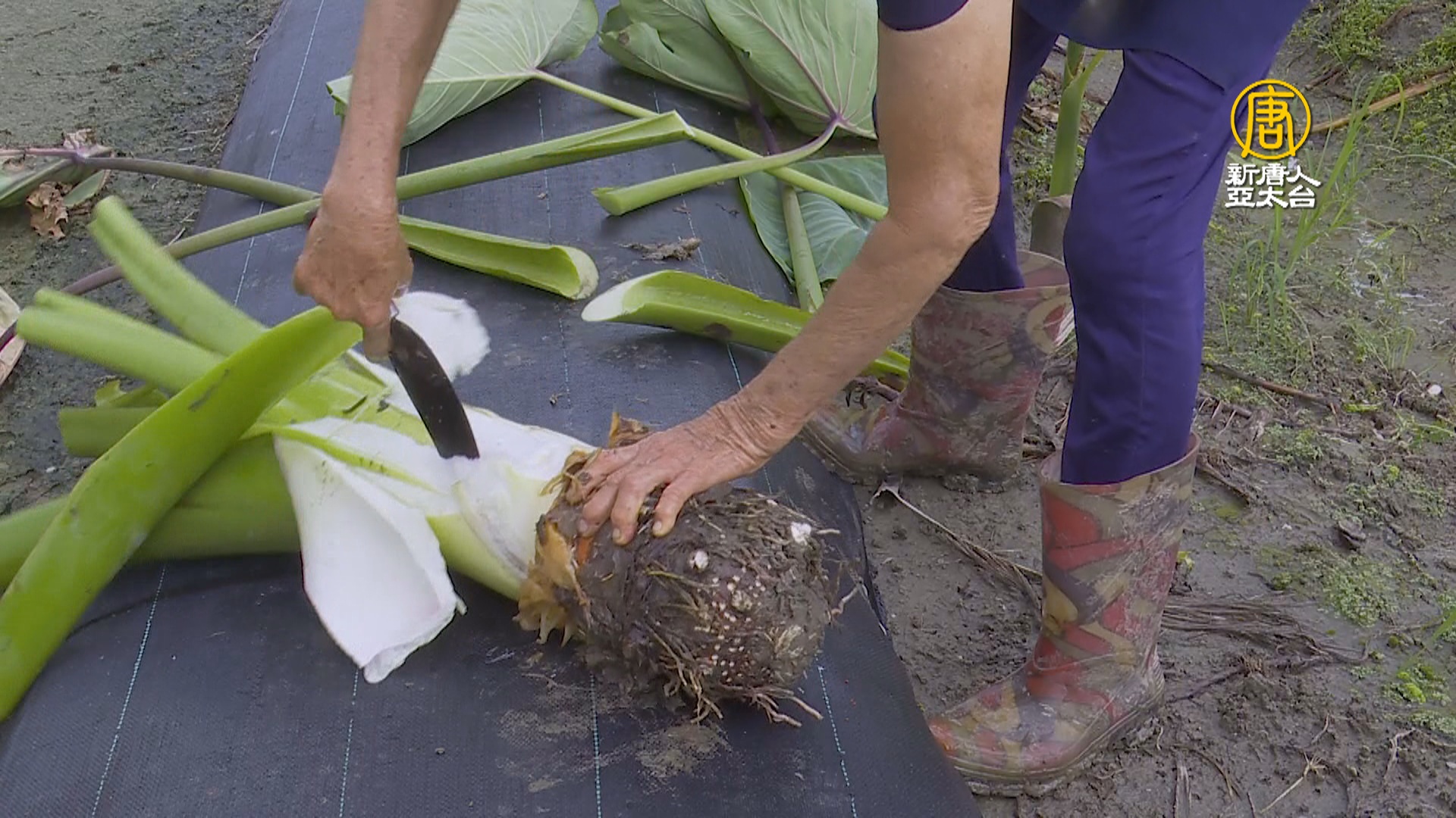 跟著77歲的劉潘秀蘭阿嬤,一起走進她的芋頭田。每一株的芋頭葉,長到160公分,幾乎都已經比她的人還高,根本有如置身叢林裡面。好不容易鋸開葉子後,要把裡頭的芋頭挖出來,也需要一點功夫。到底是什麼芋頭,需要如此費勁?