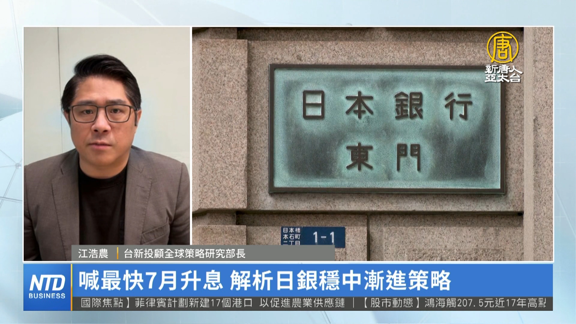 【新唐人亞太台 2024 年 06 月 19 日訊】各國央行貨幣政策受到關注,不過現在明顯走向分岐,首先是加拿大央行率先降息,再來歐洲央行也有可能降息,美國放緩了今年降息幅度,日本央行喊話,最快7月可能升息,我們如何解讀日本央行動向,請教台新投顧全球策略研究部部長江浩農,如果日銀7月升息,對金融市場會帶來何種效應?