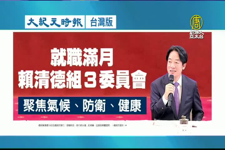 【新唐人亞太台 2024 年 06 月 20 日訊】接著看到大紀元時報台灣版報導:就職滿月,賴清德組3委員會,聚焦氣候、防衛、健康。