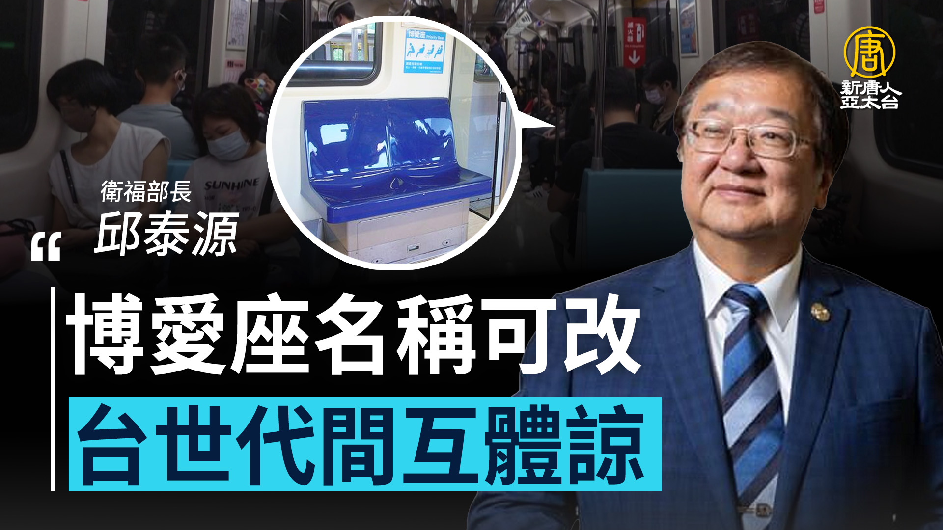 衛福部長 邱泰源:「博愛座一定會保留,名稱我們可以來討論。可是年輕人如果他身體有不舒服,我覺得可能也應該,讓他有個優先順序,給真正需要的人,也許這樣更符合大家需要,博愛座,我認為是社會溫暖的層面,一定要有世代的互相照顧、溫暖。」