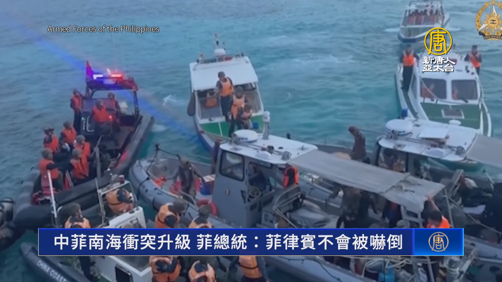 【新唐人亞太台 2024 年 06 月 24 日訊】中菲南海衝突近日升級。 週日,菲律賓總統小馬克斯在慰問菲律賓官兵時強調,菲律賓不會被任何人嚇倒。