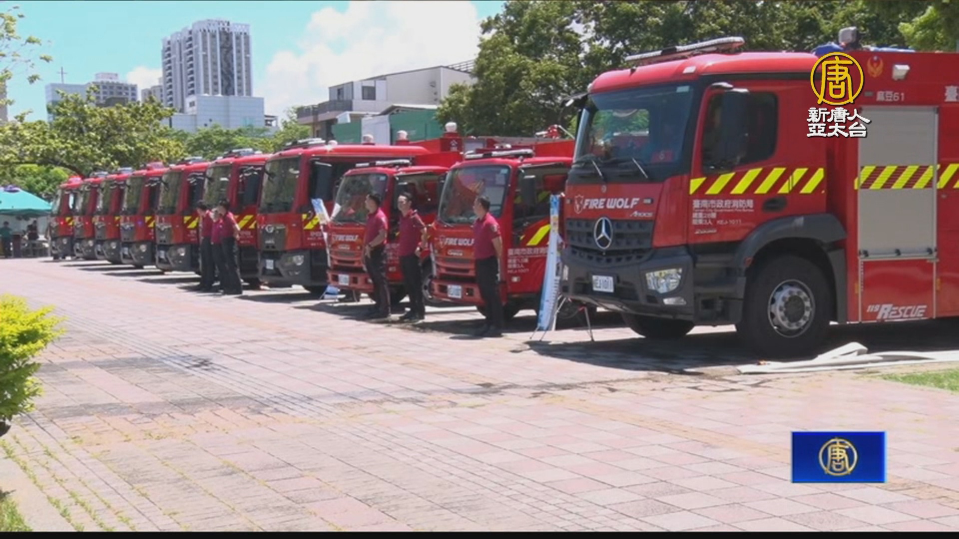 【新唐人亞太台 2024 年 06 月 25 日訊】台南救災生力軍報到。台南市府今年度新購入10輛消防車,讓10個消防分隊得以汰換主力消防車,提升台南市的救災能量。