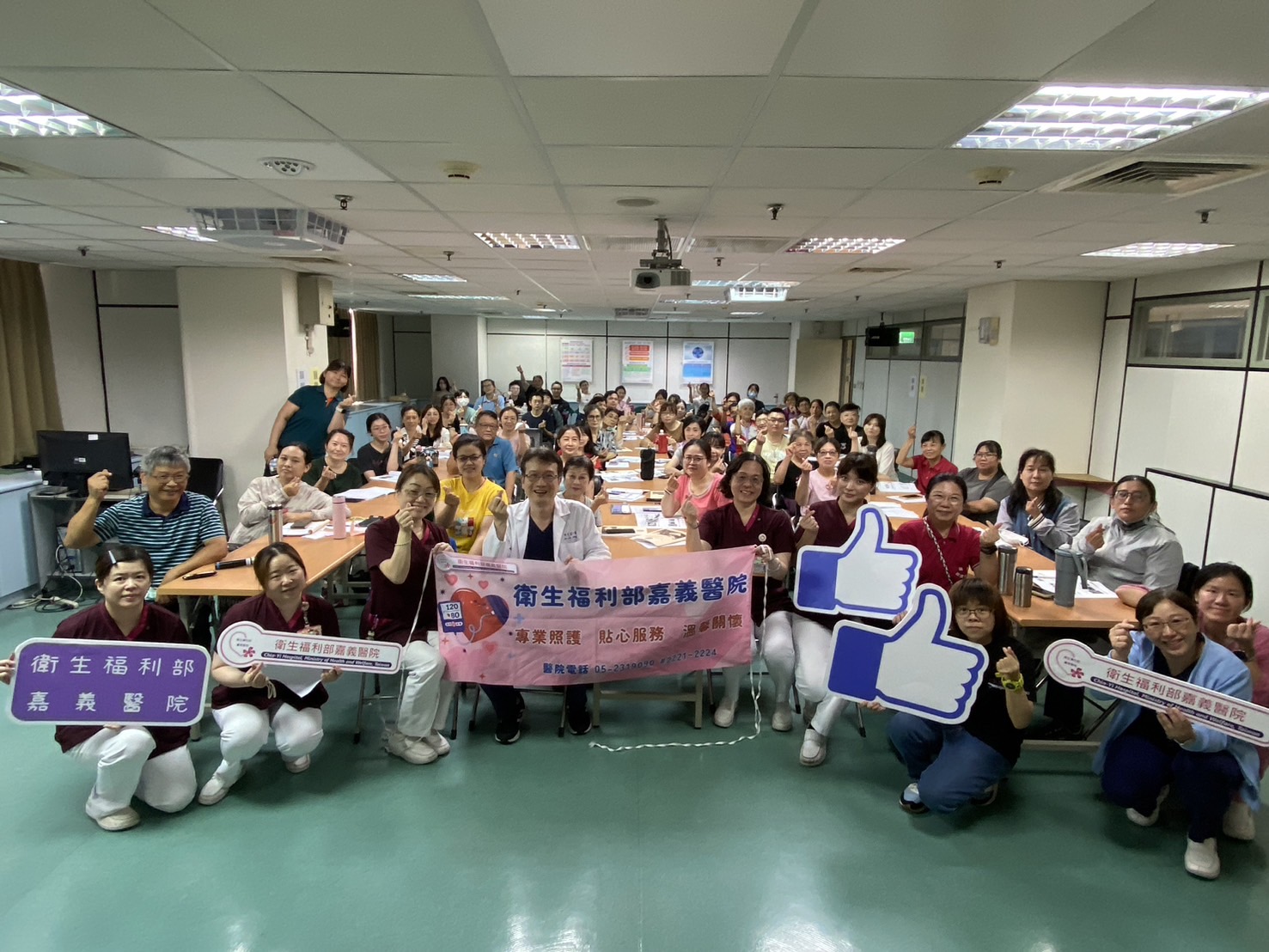 嘉義醫院提供共享照護資源,今天(25日)邀請30多家合作養護機構,一同參與長照機構研討會教育訓練課程。(嘉義醫院提供)