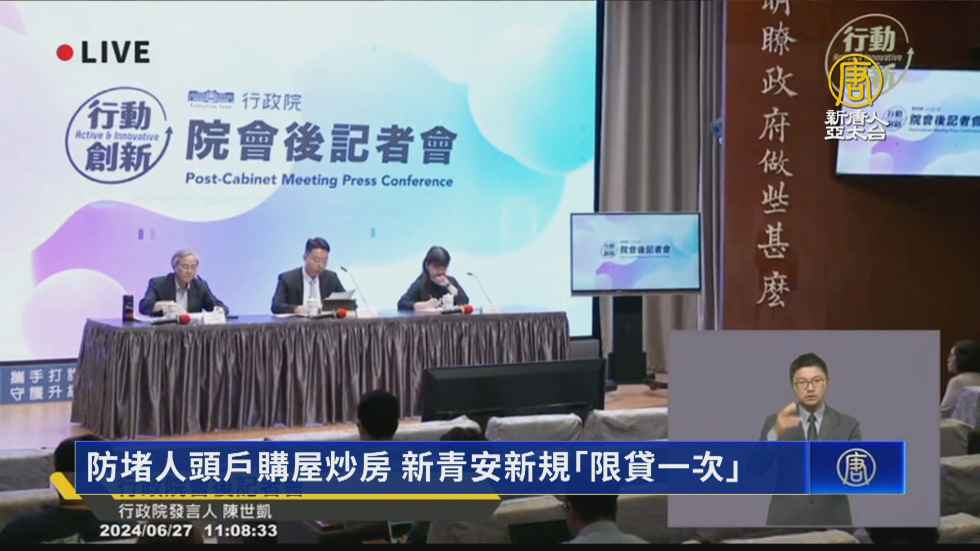 【新唐人亞太台 2024 年 06 月 27 日訊】政府推出新青安優惠房貸,但卻衍生轉租、人頭戶等問題,財政部公布最新防弊措施,除了貸前徵審、貸後管理和稽查,以及新戶簽署自住切結書外,另外新增「限貸一次」條款。