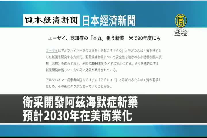 【新唐人亞太台 2024 年 07 月 01 日訊】來看到日本經濟新聞報導:日本衛采製藥開發阿茲海默症新藥,預計2030年在美國商業化。
