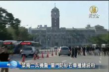 中正一分局副分局長 陳國座:「有關今日4點41分,有一位杜姓民眾駕車沿凱道東往西的方向,行經總統府,經本分局發現他有異狀,要予以攔查時,突加速衝撞總統府府前的花圃,造成三個花圃受損的情形,但無人員受傷,經本分局迅速控制現場之後,經實施酒測,酒測值為零,初步發生此案件的原因,本分局正在釐清後續的原因中。」