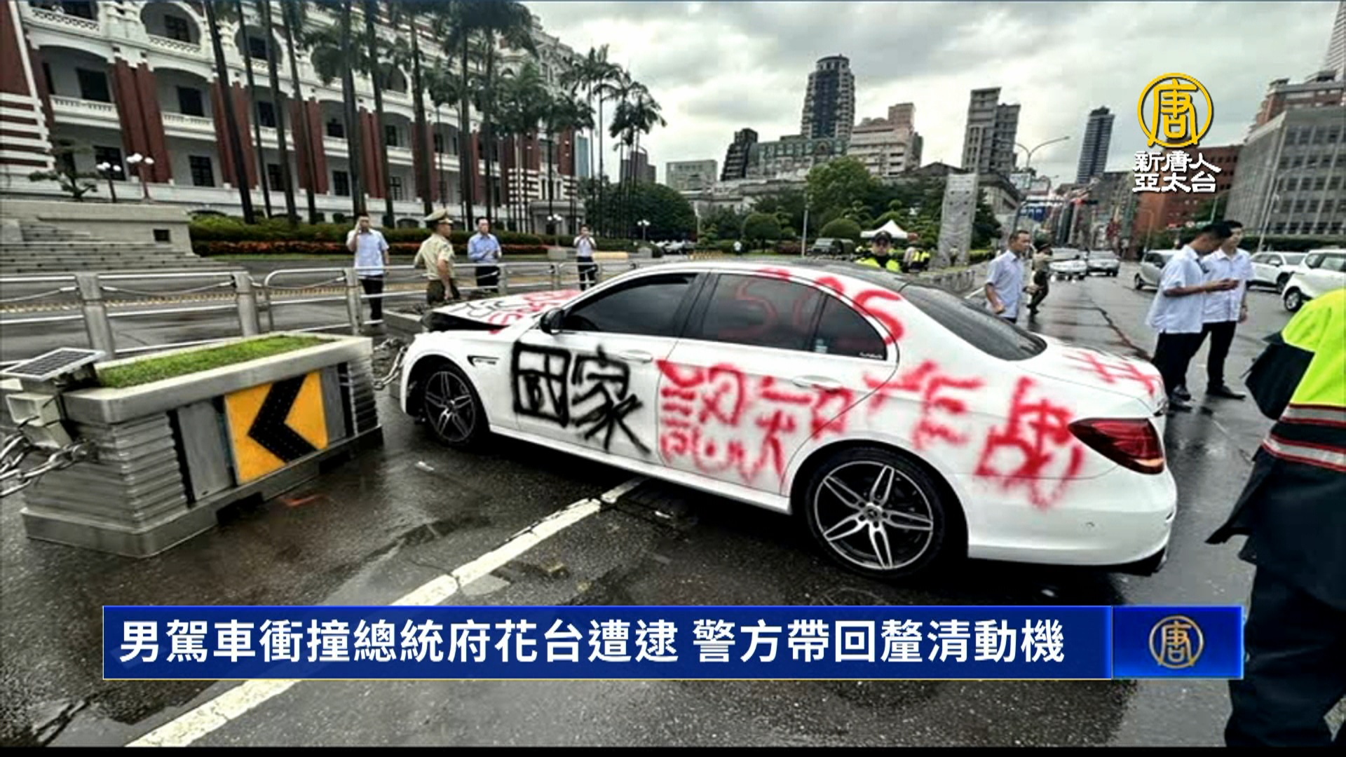 警方表示,這名男子下午3點多,先到AIT美國在台協會門外狂按喇叭,遭警方勸離後,竟然又開到總統府前刻意加速衝撞門前花台,當場遭警方逮捕。犯案的64年次杜姓男子,被警方依道路交通管理處罰條例、公共危險罪與毀損罪送辦。依照現場照片,事故車輛車身被用噴漆寫上「國家認知作戰」、「SOS」等突兀字樣。總統府發言人郭雅慧表示,第一時間已將該民眾交由警方帶回派出所,後續交由警方釐清案情與行為動機。