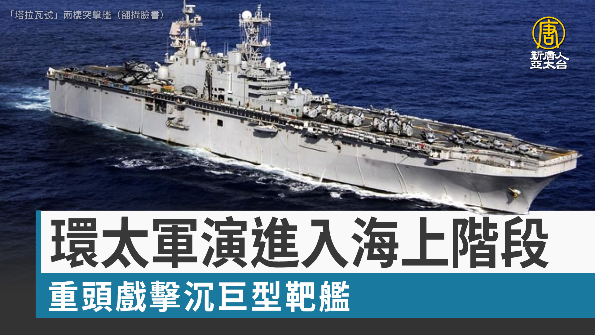 【新唐人亞太台 2024 年 07 月 08 日訊】兩年一度,本屆29國環太平洋軍演,今天進入海上軍演階段,重頭戲是擊沉一艘4萬噸級的退役兩棲攻擊艦「塔拉瓦號」。這被認為是在驗證,美軍與盟友打擊中共兩棲攻擊艦的能力,因應中共武力攻台的可能場景。