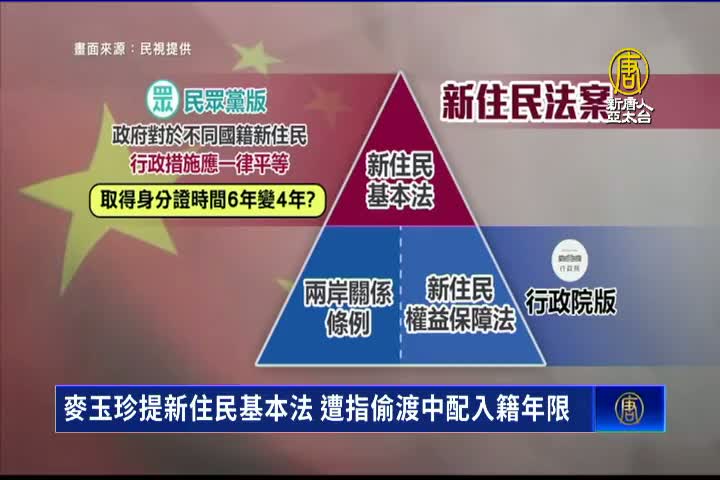 【新唐人亞太台 2024 年 07 月 13 日訊】針對新住民基本法草案,三黨再度召開朝野協商,不過民眾黨提修正動議,裡頭提到不同國籍地區新住民行政措施應一律平等,讓民進黨立委有疑慮,難道是偷渡降低中配入籍年限嗎,而且基本法位階還凌駕於兩岸關係條例,簡直是國安拉警報。