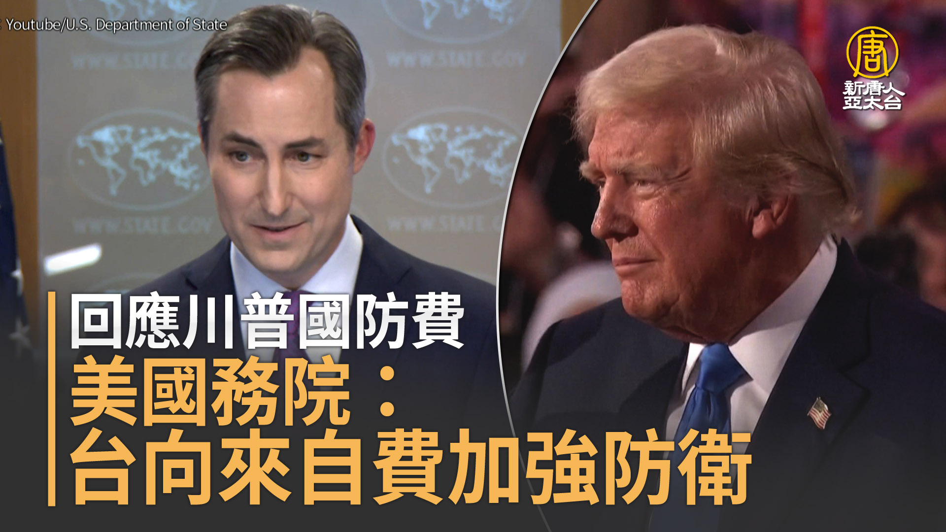 【新唐人亞太台 2024 年 07 月 18 日訊】美國共和黨總統候選人、前總統川普表示,台灣應該付給美國國防費的說法,引起大量關注。對此,美國國務院17號回應川普的說法表示,台灣一直都是付費購買美國軍備。