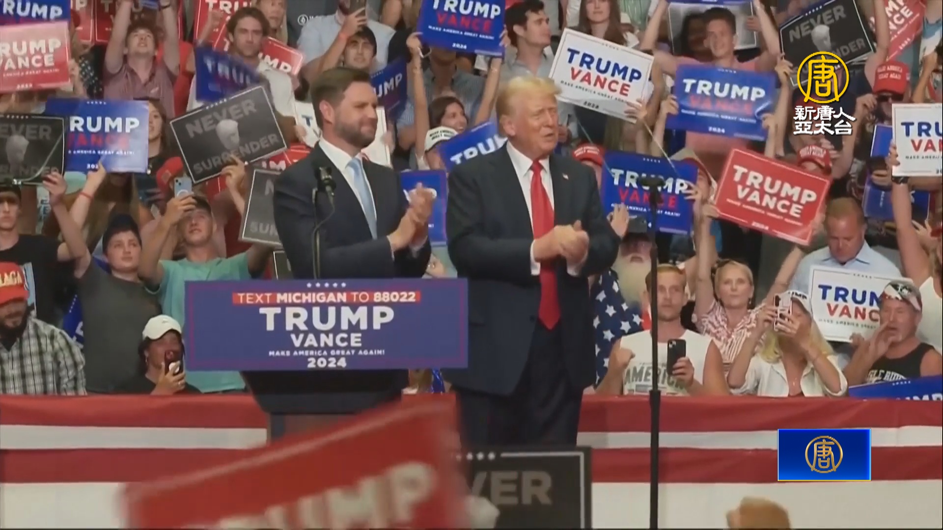 【新唐人亞太台 2024 年 07 月 22 日訊】拜登宣布退選,改支持賀錦麗,對此,共和黨陣營的川普發文,表示對自己勝選更有信心,而上週六他與副總統提名人范斯同台造勢,川普也再次提及了槍擊案。