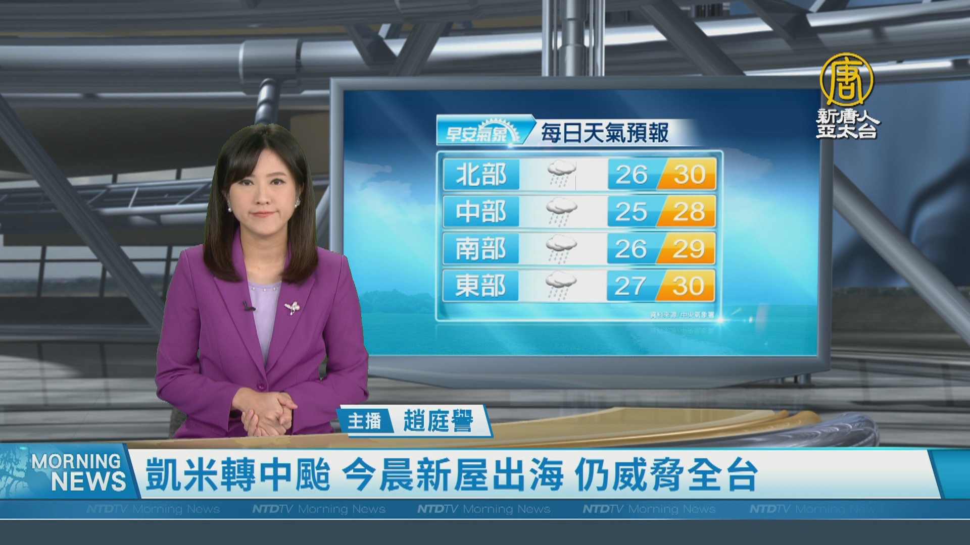 【新唐人亞太台 2024 年 07 月 25 日訊】歡迎您收看7月25日的早安新唐人,我是趙庭譽,先來帶您關心天氣。颱風凱米肆虐台灣,受地形影響目前已經轉為中颱,今天凌晨4點20分左右,凱米已經從桃園市新屋區附近出海,向西北西轉西北移動,不過,暴風圈依舊籠罩台灣、澎湖跟馬祖,並逐漸進入金門,各地持續會有風雨,對全台仍構成威脅。而中南部風雨會持續到晚上。帶您一起來看到國際媒體重要訊息。