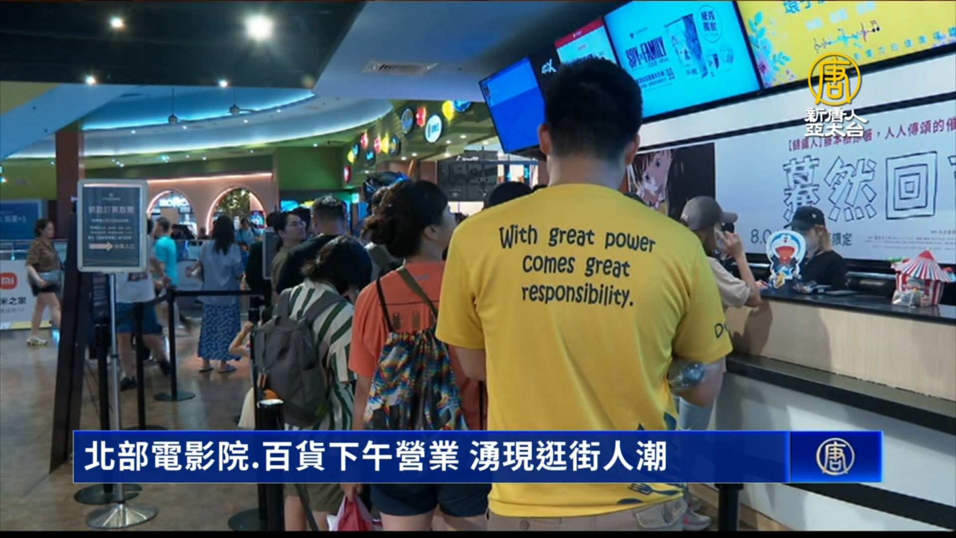 【新唐人亞太台 2024 年 07 月 25 日訊】因應凱米颱風,全台灣今天停班停課一天,不過北部風雨逐漸減弱,商家也抓住颱風假最後時刻,包括百貨公司、電影院都在下午開門營業,湧現民眾逛街人潮。