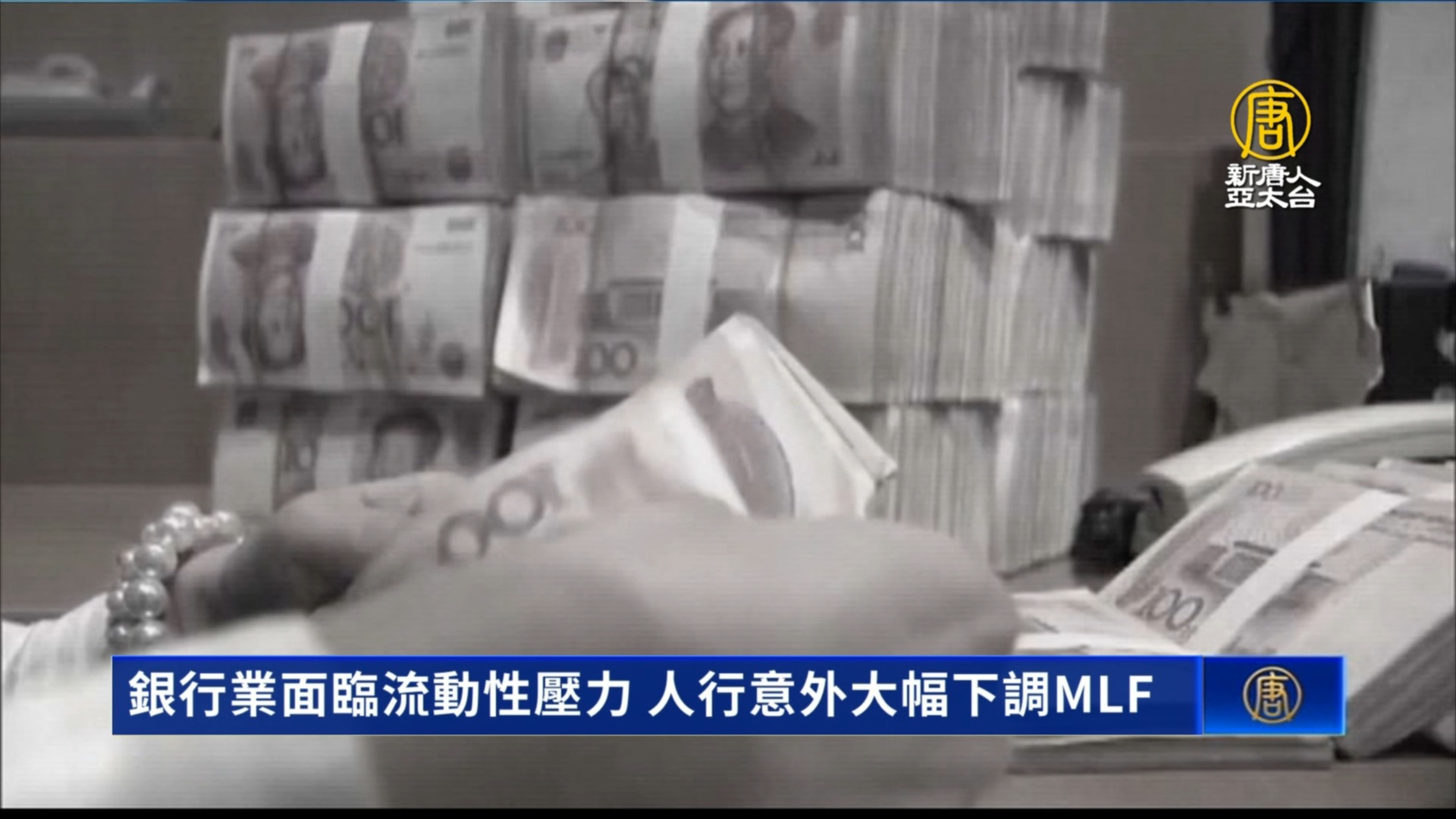 【新唐人亞太台 2024 年 07 月 25 日訊】中國經濟疲軟,中共央行週一降息下調LPR,又再次出手,公告以利率招標方式展開1年期人民幣2000億元中期借貸便利(MLF)操作,中標利率下調為2.3%,較先前下降0.2個百分點。有分析師認為是意料之外的罕見操作,也有報導指出,中共央行加大執行貨幣政策力道加大,顯示中國銀行業正面臨嚴重的流動性壓力。