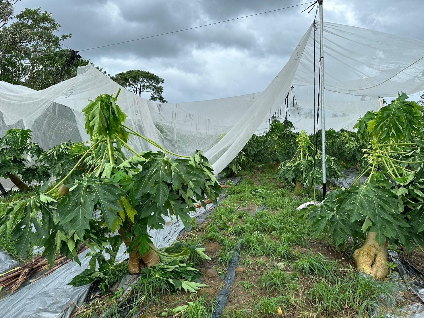 【新唐人亞太台 2024 年 07 月 27 日訊】第3號凱米颱風肆虐台灣,南部山區單日累計雨量破1000毫米。颱風過境帶來的豪雨,讓嘉義縣番路鄉果樹類農作物及溫網室設施首當其衝,受災嚴重,番路農會於26日上午展開了對果園的檢視,發現連日的豪雨導致番路青農木瓜園及小黃瓜、花卉等網室結構大面積的破損倒塌,栽植的農作物面臨了一年辛勤耕耘付流水的困境。