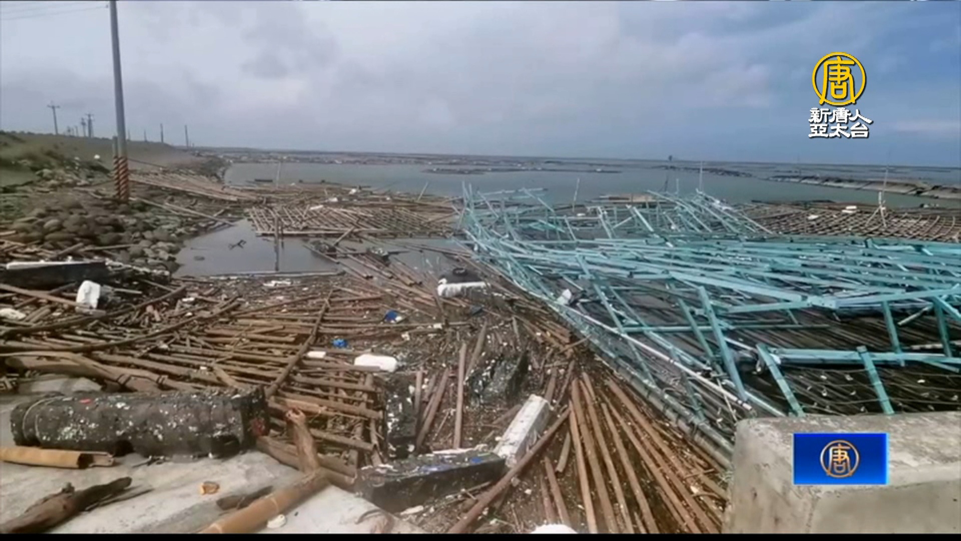 【新唐人亞太台 2024 年 07 月 27 日訊】凱米颱風重創全台,截至目前為止,全台農業損失金額已超過11億元新台幣。除農作物災情慘重,畜產、漁產也陸續傳來災情。嘉義牡蠣的蚵棚有八、九成遭毀,損失難以估計。