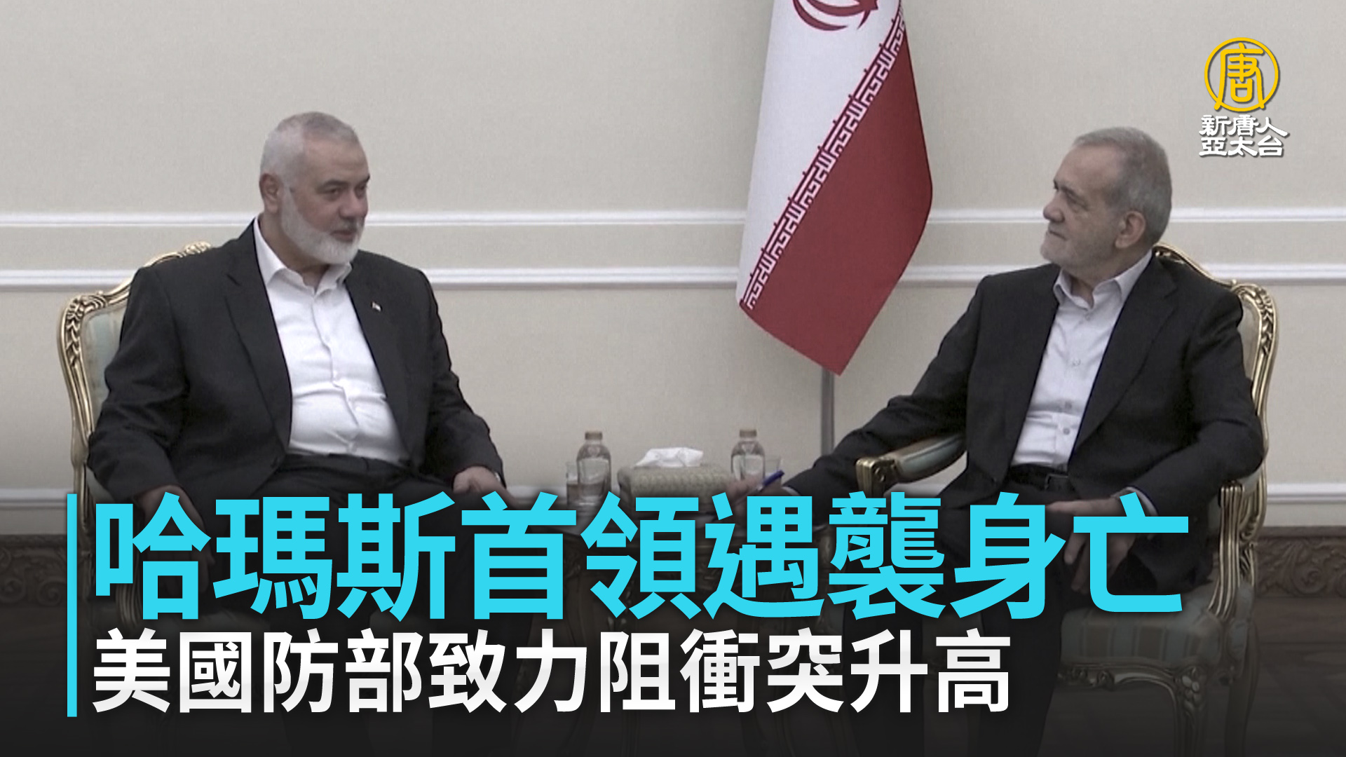 【新唐人亞太台 2024 年 07 月 31 日訊】歡迎回來。國際消息來看到,以哈戰爭雙方交火9個多月,巴勒斯坦激進組織哈瑪斯週三表示,組織領導人哈尼雅在伊朗德黑蘭遭暗殺身亡。而哈尼雅週二才剛在德黑蘭參加伊朗新當選總統的就職典禮。哈馬斯指控是以色列所為,不過目前以方尚未做出回應。