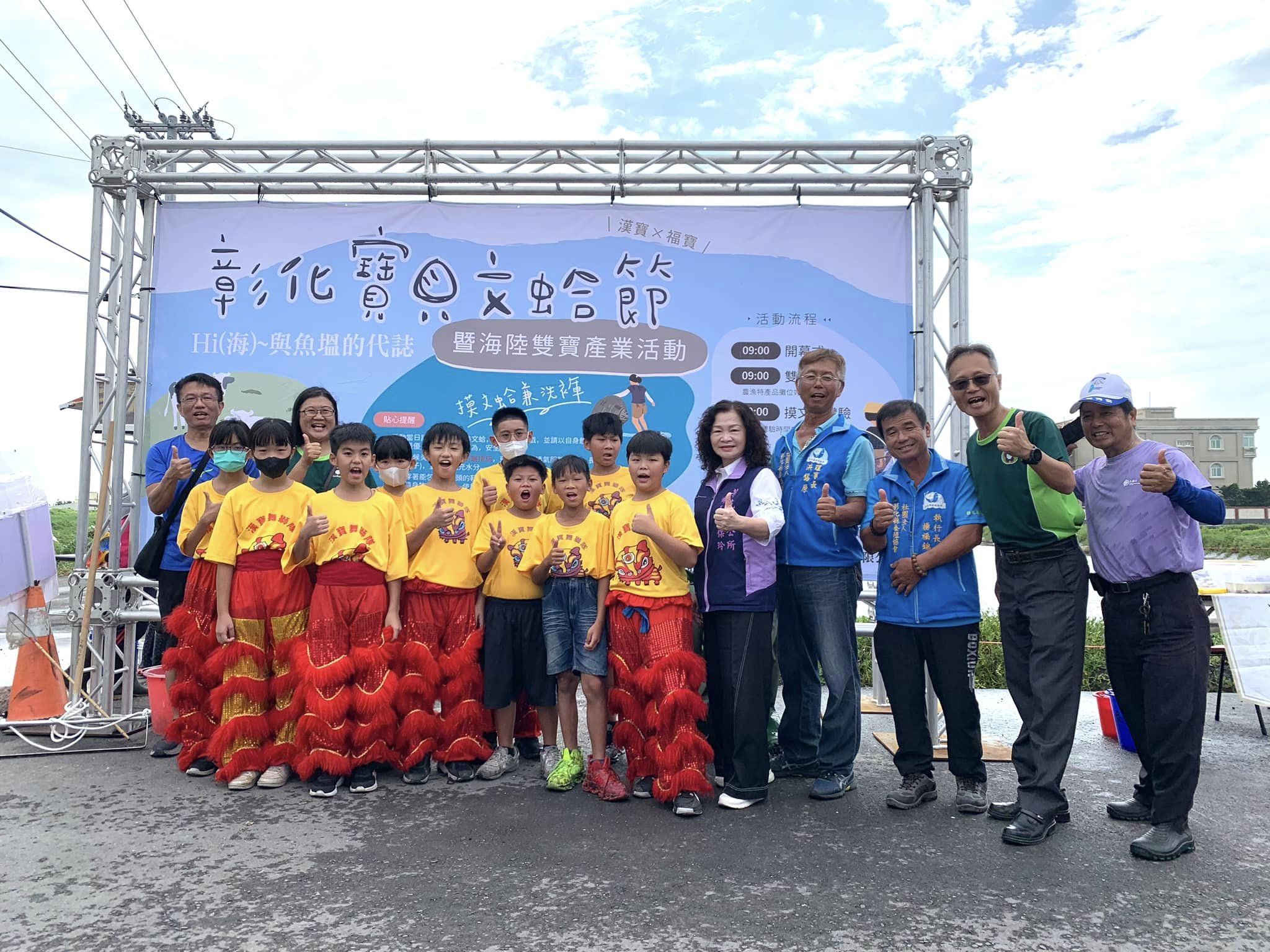 漢寶國小舞獅隊、芳苑鄉鄉長林保玲、社團法人彰化縣養殖協會洪錫原理事長、社團法人彰化縣養殖協會楊福錦執行長、漢寶國小校長(從左至右)(社團法人彰化縣養殖協會)