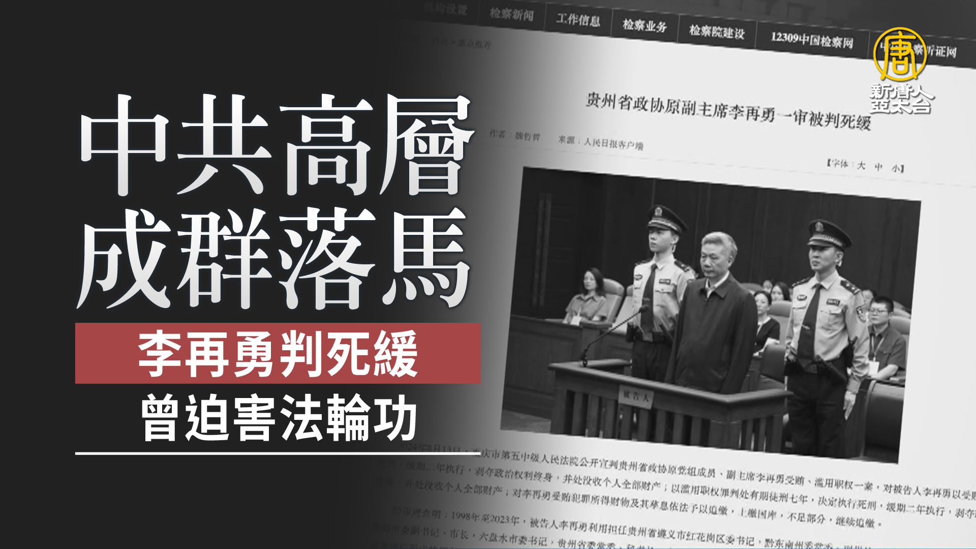【新唐人亞太台 2024 年 08 月 14 日訊】再來看到,中共內部以貪腐為名的整肅風波擴大,近日,包括,廣東省惠州市、貴州省貴陽市、河北省唐山市等地接連爆出相關案件,高層官員「成群」落馬;週二,中共貴州省政協前副主席李再勇,被當局一審判處「死緩」,受賄金額約4.32億人民幣。李再勇先前也被揭露配合中共,參與迫害法輪功。