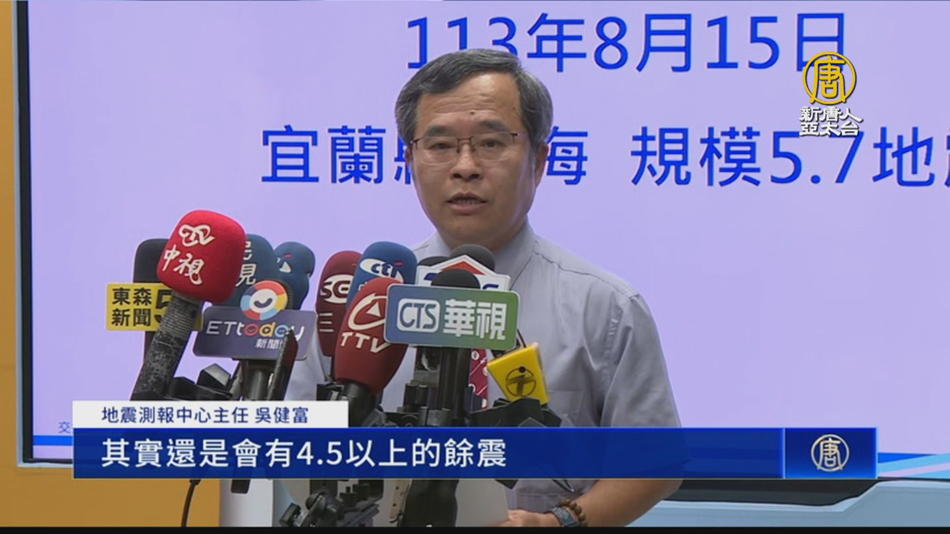 2024-08-15 19:04:56新聞開始先來看到,今天傍晚5點06分,宜蘭蘇澳近海發生規模5.7地震,全台有感,地震深度只有9公里,屬於極淺地震。包括花蓮、雙北震度都達到4級,而接續在5點07、5點33分,又發生兩次規模4以上的地震。