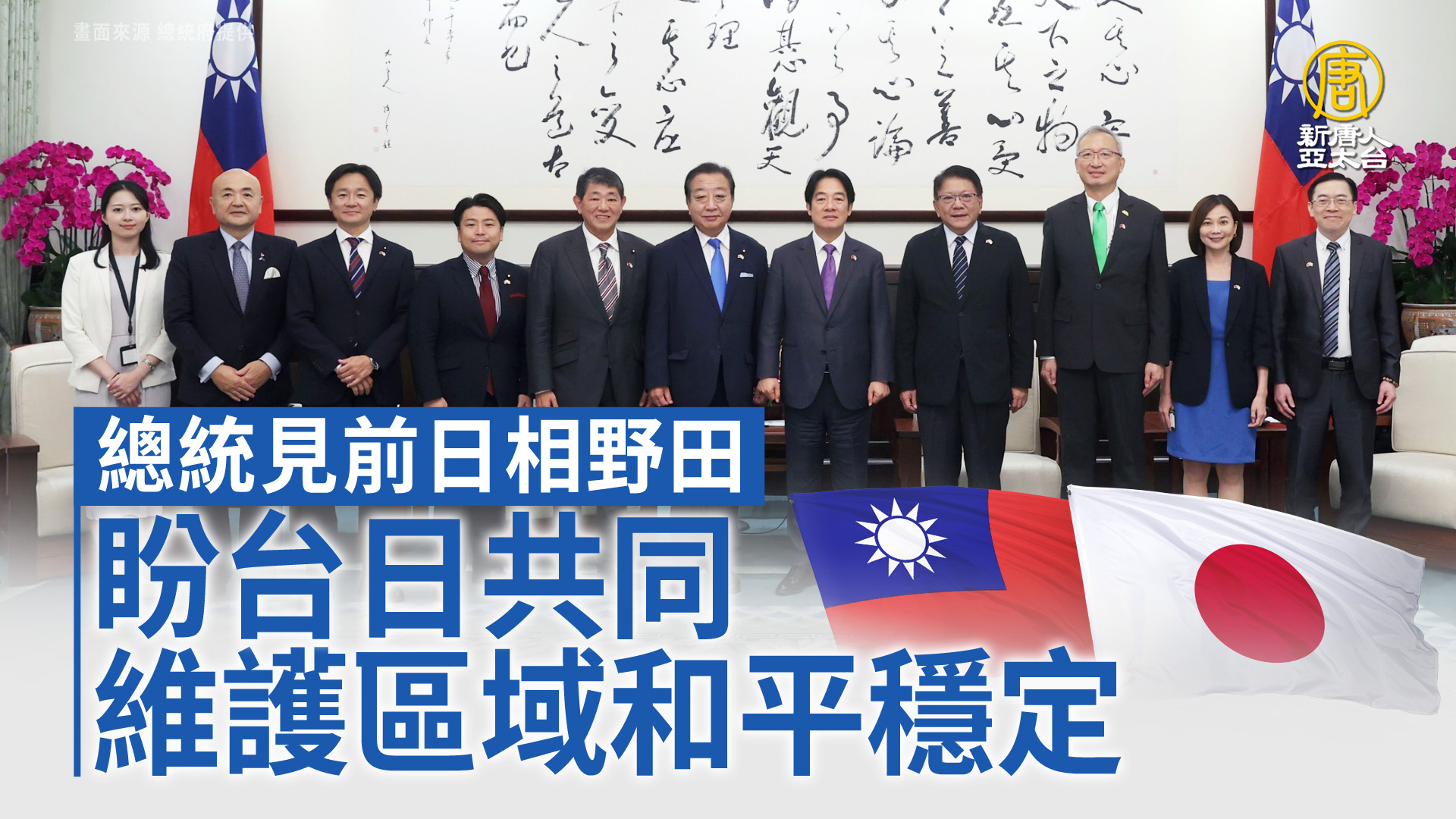 【新唐人亞太台 2024 年 08 月 21 日訊】好,總統賴清德連兩天接見日本訪賓,繼昨天接見日本自民黨青年局訪團後,今天(21日)接見日本前首相野田佳彥率領的訪問團,感謝日方對台海安全的重視與支持,期許台日攜手維護區域和平穩定。日本前首相野田佳彥認為,賴清德就職演說,傳達台海和平的強烈願望,他承諾日本做為鄰國會合作支持。