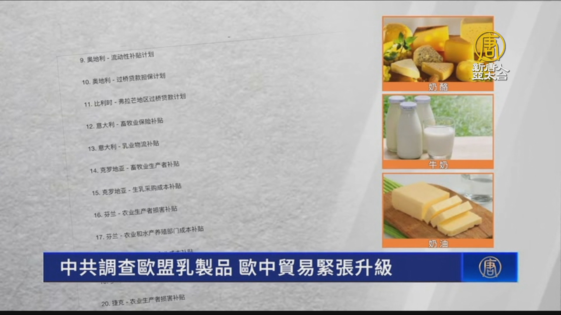 【新唐人亞太台 2024 年 08 月 22 日訊】來關注中歐貿易緊張升級,週三,中共商務部宣布,對歐盟乳製品展開反補貼調查,歐盟表示將「酌情干預」。