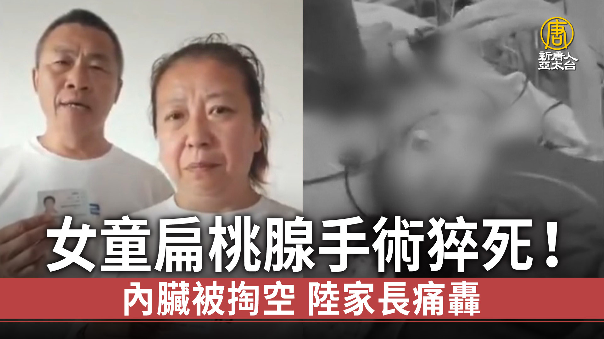【新唐人亞太台 2024 年 08 月 23 日訊】中國哈爾濱一名10歲女孩近日到北京兒童醫院黑龍江分院做扁桃腺微創手術時,突然肺部出血死亡,醫院事後給女孩驗屍,但卻掏空了女孩的內臟,引發家屬強烈質疑。